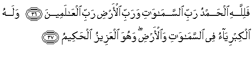 37. Göklerde ve yerde büyüklük O'nundur. O, üstün ve güçlüdür, hüküm ve hikmet sahibidir |