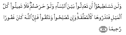 130.Eğer ikisi ayrılacak olurlarsa, Allah her birine 'genişlik (rızık ve ihsan) kaynaklarından' kazandırır (ihtiyaçlardan korur.) Allah, (rahmetiyle) geniş olandır, hüküm ve hikmet sahibidir. | ![]() |